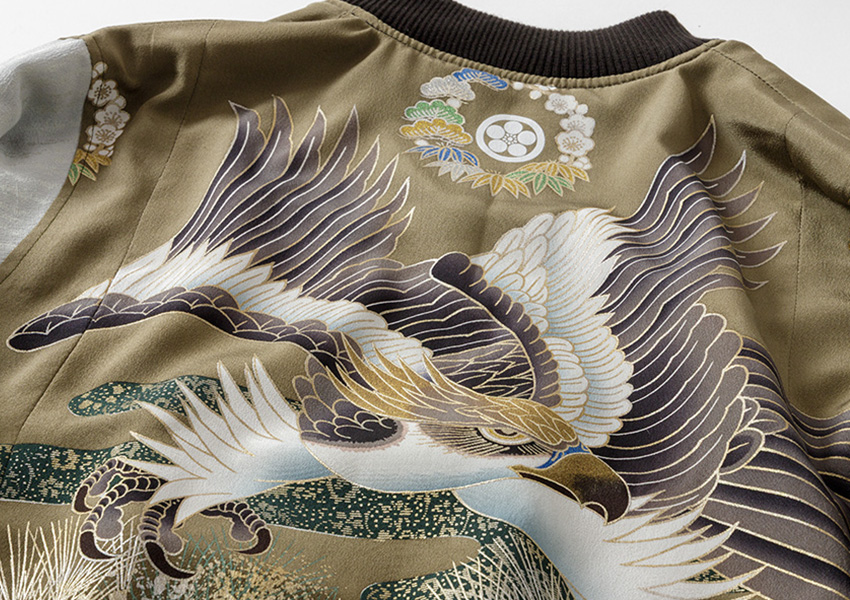 Some of the kimonos used for HAREJAN are sourced from boys’ Shichi-Go-San celebration outfits. Unlike everyday kimonos, these garments primarily feature refined and traditional patterns. Inspired by the valor of samurai warriors, many also include bold, spirited motifs such as dragons, tigers, and eagles, which symbolize strength, success, and the prosperity of future generations. Vintage pieces in particular often showcase daring designs and richly detailed embroidery rarely seen in modern kimonos. It is these standout motifs that give the sukajan its signature, stylish appeal.