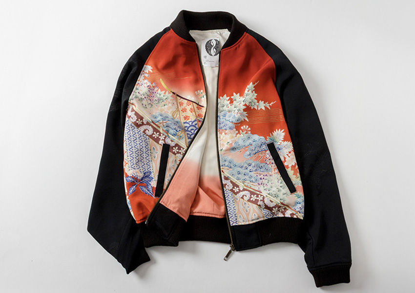 Embodying this idea is HARE’s new sukajan, the HAREJAN which incorporates traditional kimono motifs in a bold, vibrant way. Tracing the origins of the sukajan reveals that it was originally a Japanese-made souvenir jacket, with its history dating back to Yokosuka in the years following World War II. At the time, the city was home to a U.S. naval base, and American service members stationed there sought uniquely Japanese-style keepsakes to bring home. These early sukajan were custom-ordered from tailor shops, featuring embroidery on lustrous satin fabric depicting dragons, eagles, tigers, and iconic symbols such as Mount Fuji and cherry blossoms, along with emblems representing military units or bases.