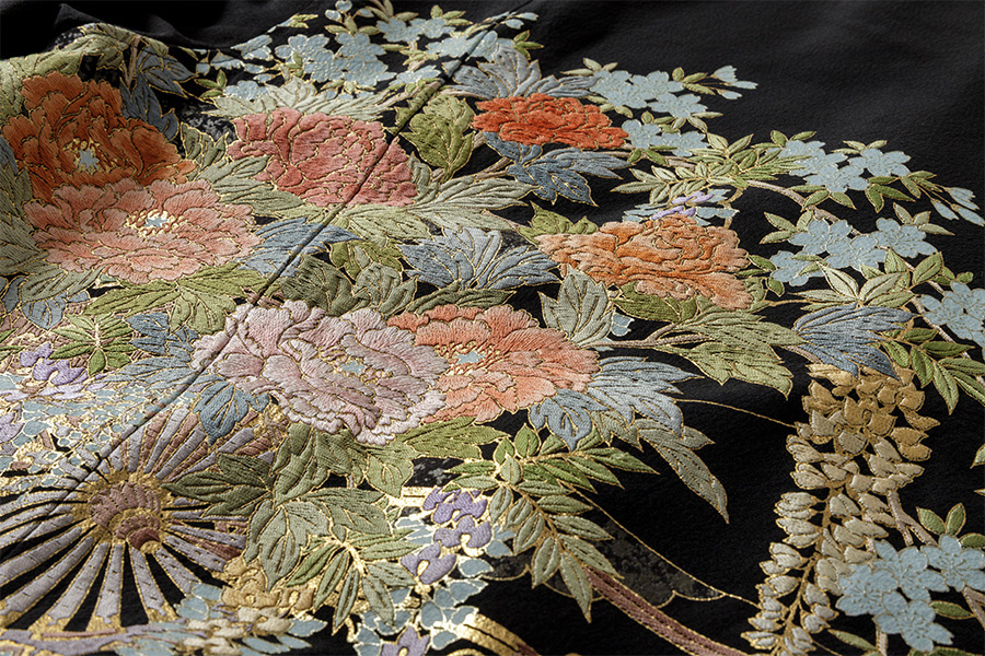 Image 2: The back is adorned with a fully embroidered kurotomesode.