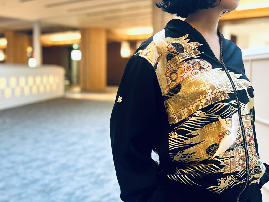 Later, the jacket’s shape was modeled on a baseball jacket, familiar and approachable to Americans, while the embroidery was commissioned from skilled artisans in Kiryu and Ashikaga. Among U.S. service members, it became popular as a “souvenir jacket,” and by around the 1960s, it came to be known as the “sukajan.” Today, it continues to be loved overseas as a stylish, Japanese-inspired jacket. HAREJAN takes this iconic sukajan and distinctly incorporates vibrant kimono designs, giving it a fresh, celebratory flair.