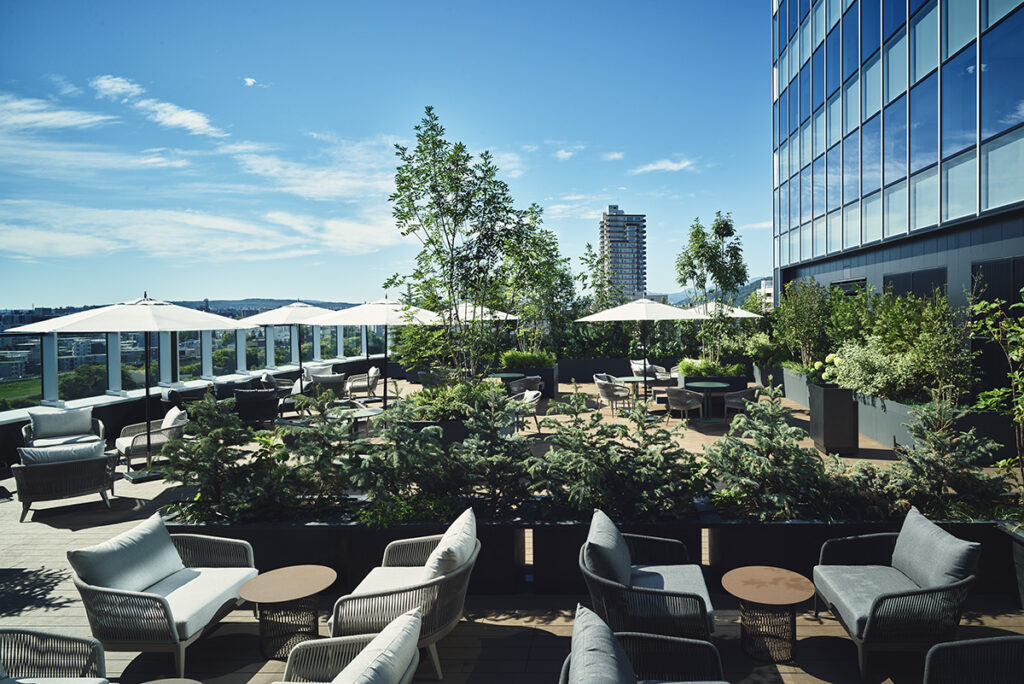 Though set within a sophisticated urban environment, the hotel’s 9th-floor lobby features a terrace that brings the rhythms of nature and the changing seasons right to the guest. Inside, the lobby lounge features a water basin, where the gentle sound of flowing water creates a serene ambiance. Adjacent spaces include the fireplace-equipped Fire Lounge and a lounge area surrounded by greenery, seamlessly flowing into one another. Every detail of the interior, from Hokkaido-sourced wood to natural stone, blends tranquility and comforting relaxation in perfect harmony.