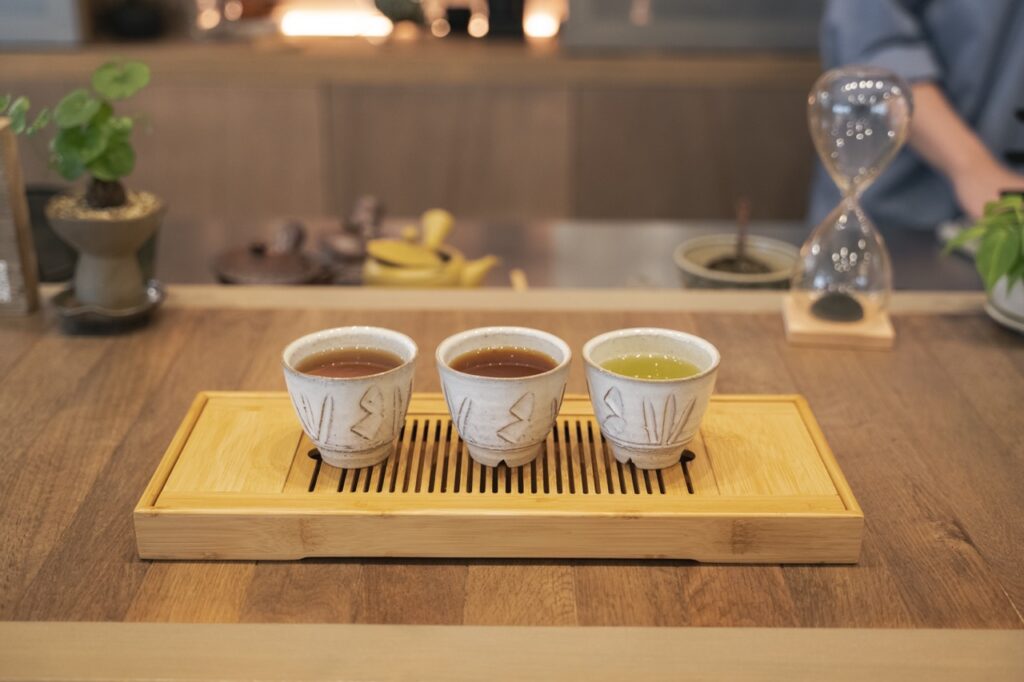Choosing Today’s Three-Tea Tasting lets you sample three distinct types: sencha, Japanese black tea, and hojicha.
