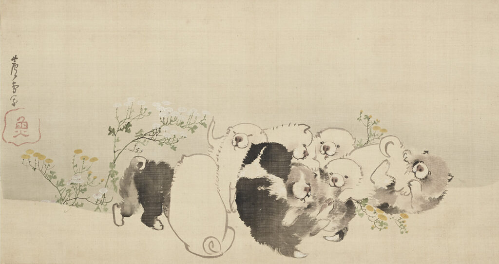 The dogs painted by Nagasawa Rosetsu, often referred to as Rosetsu’s puppies, remain widely beloved today, even appearing in a range of merchandise. Their irresistibly endearing expressions have a way of capturing hearts and holding on.