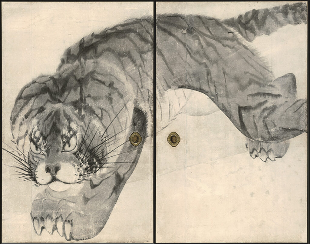 “Tiger (sliding door panel)”, Muryoji Temple / Kushimoto Ōkyo Rosetsu Museum, Important Cultural Property. On view during the second exhibition period.