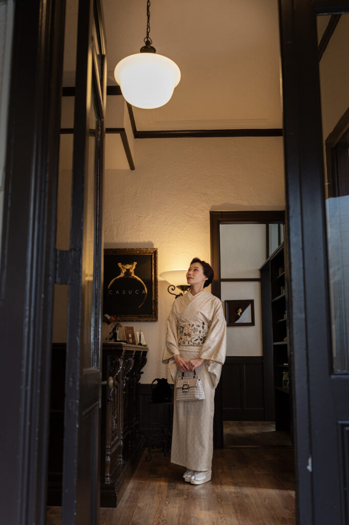 “What really draws me in is that, whether in architecture or kimono, the period from Meiji to early Shōwa was a time when individuality shone through,” Yulia says. With a lively sense of anticipation, she stepped through the doors of CASUCA HISTORIA.