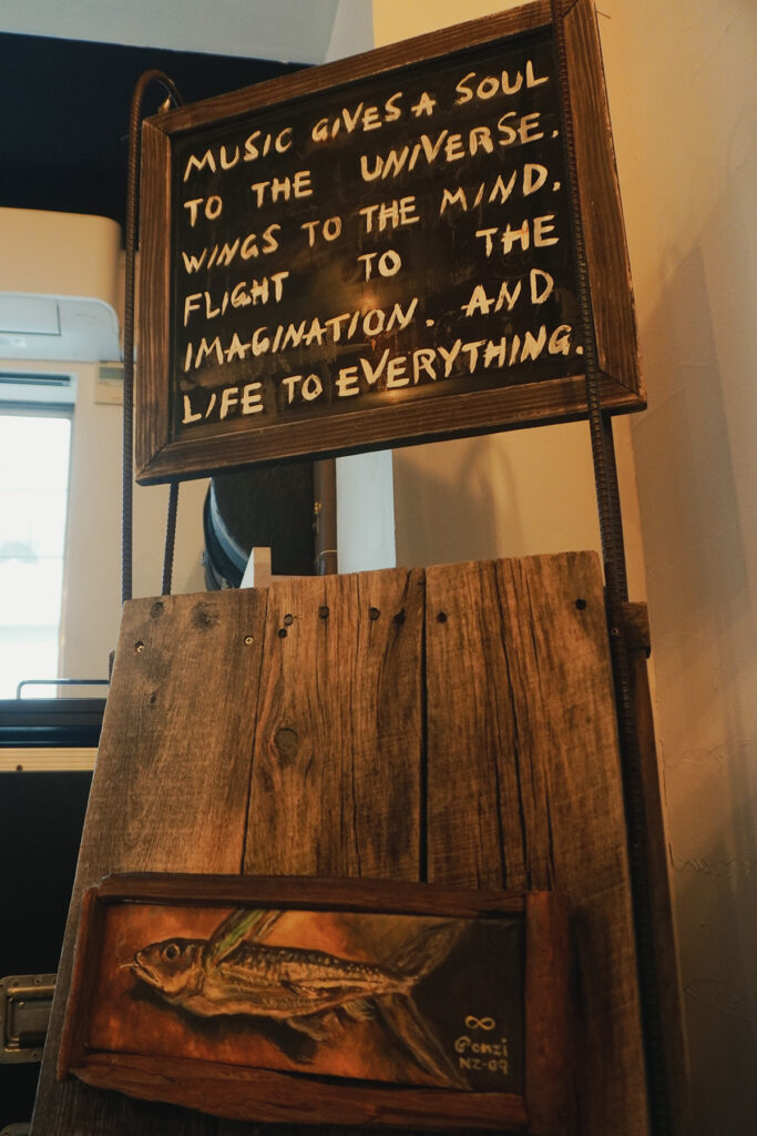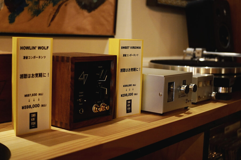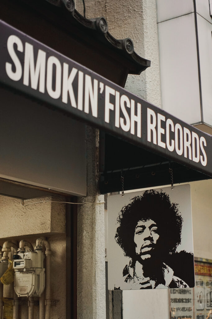 Just a minute’s walk from Yutenji Station along the Toyoko Line, a narrow staircase sits tucked between a Matsuya and a pachinko parlor. It’s easy to miss, though the Jimi Hendrix artwork outside catches the eye. Three floors up is SMOKIN’ FISH RECORDS, a cozy, unpretentious space where music takes the lead and sound reigns supreme. Under the warm glow of amber lights, this record shop and bar offers a thoughtfully curated range of UK and US pressed vinyl, making it easy to find a new favorite or rediscover a classic. The sound system is a major draw, custom tuned to bring out the full depth and warmth of each recording and capture the music as it was meant to be heard. The bar area invites guests to settle in, enjoy a glass of wine or spirits, and trade stories with owner Kaya Ogawa, the traveler, guitarist, and audio craftsman behind its creation.