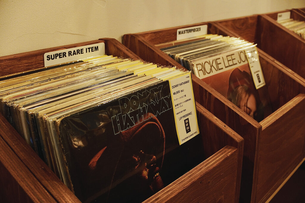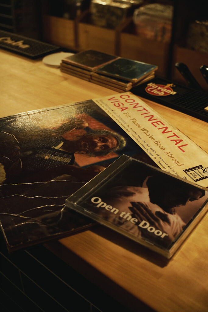 The record shop and bar was originally opened in Yokohama and relocated to Yutenji in mid-2025. It’s a place for music lovers to hear great records and experience the best possible sound. As you walk in, on the left are rows of vinyl records in wooden boxes, all categorized clearly. To the right is the wooden bar counter, and an open space where the main speakers sit for listening and instruments are placed for live music. “I designed everything by myself, I was like a carpenter,” Kaya says with a laugh as he recalls the early days of scouring Pinterest for inspiration, sourcing furniture and fixtures, and spending months putting it all together.