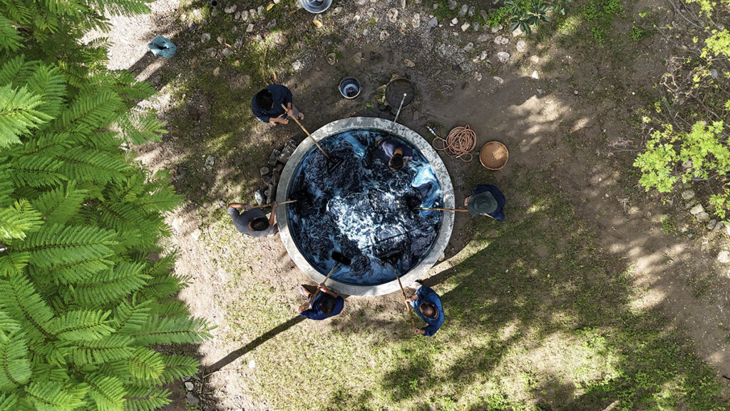 Sacred Skirt (3rd image). Each piece blossoms from the core practice of indigo dyeing at ganga maki, translating the studio’s essence into a spectrum of expressive forms.