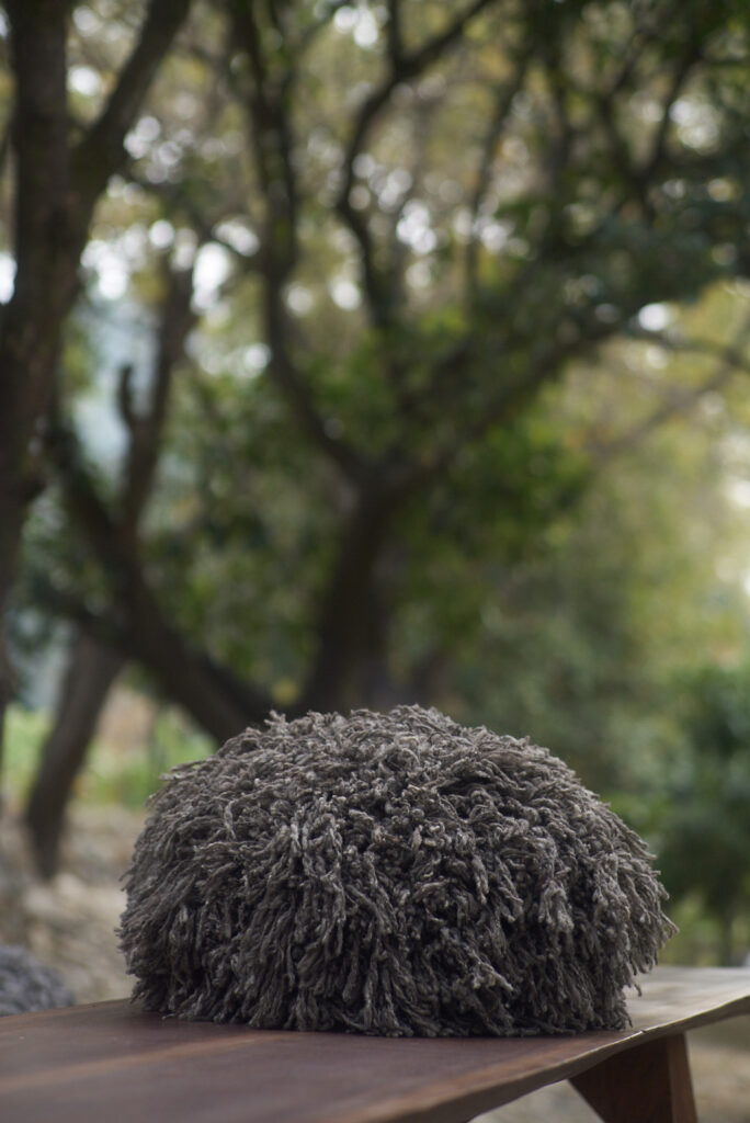 2nd image: Himalayan Cloud (hand-spun Himalayan wool, diameter 85 × 98 × height 43 cm)